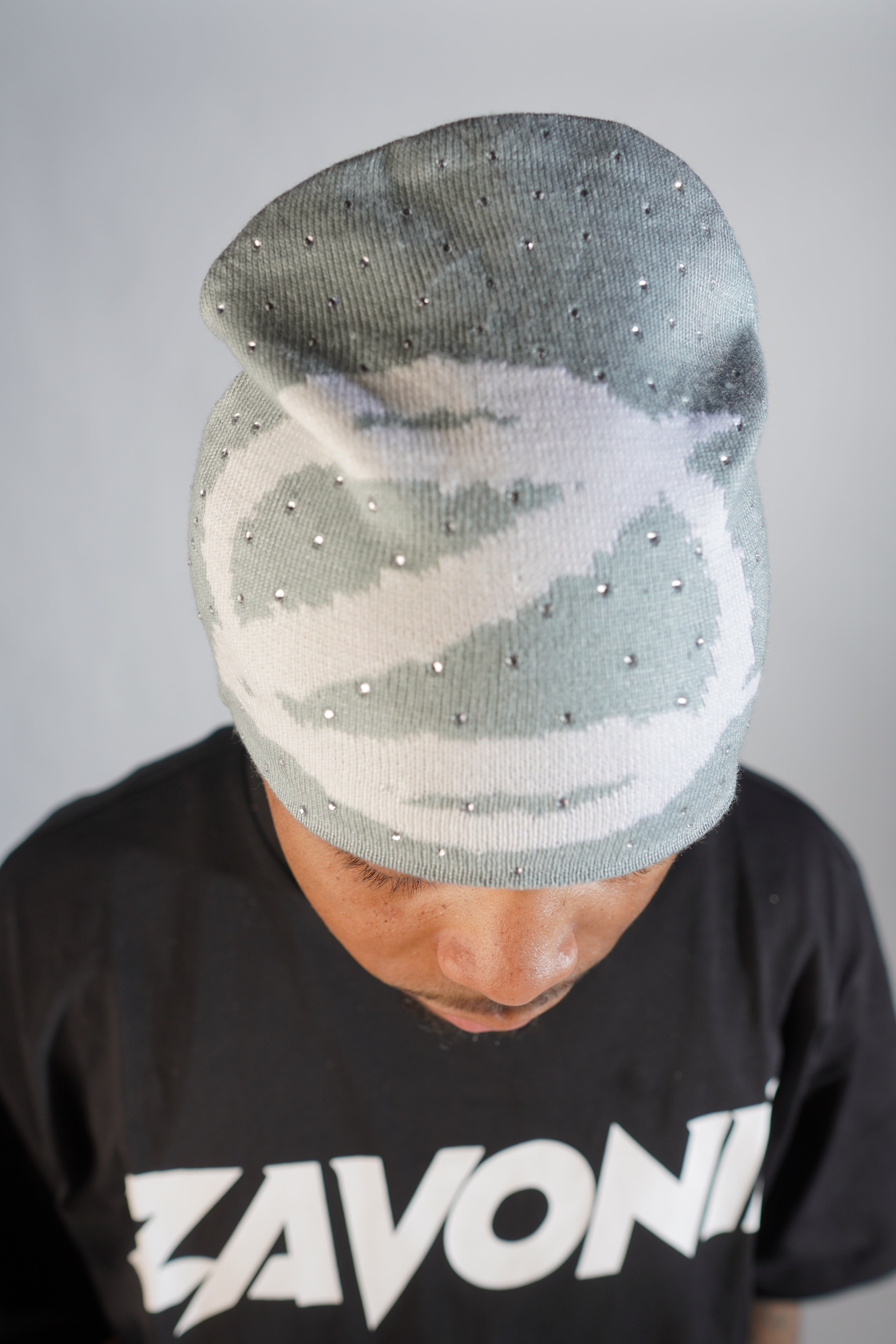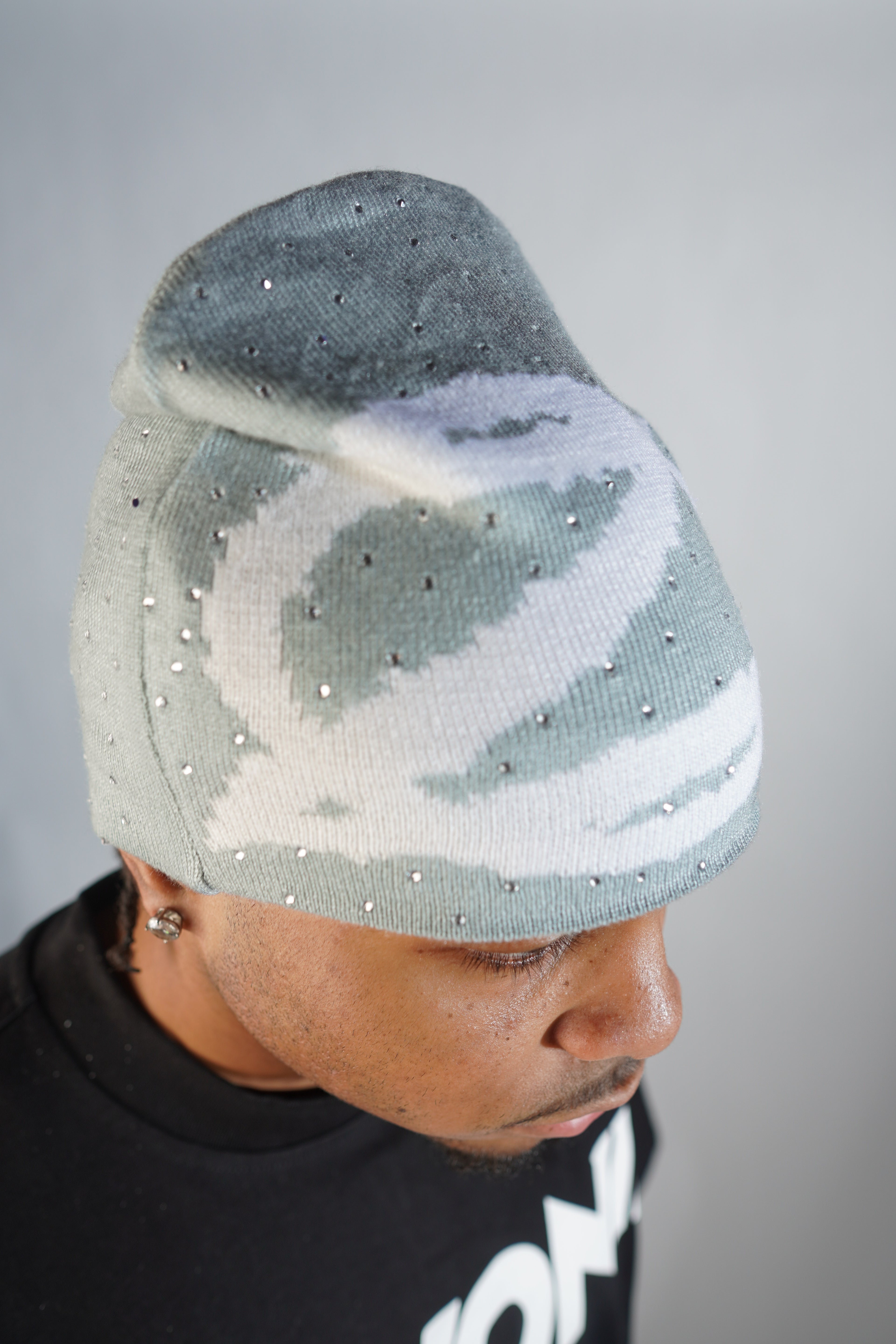 GREY RHINESTONE BEANIE